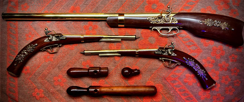TRAVEL CASE FLINTLOCK PISTOLS, SHOT GUN & TRUNCHEON