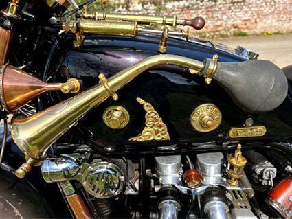 Moving forwards with the theme I thought about some of the stories & adventures written by "Sir Arthur Conan Doyle". I wanted to put references all over the bike, like a brass wolf's head referring to the adventure "The Hounds Of The Baskerevilles" & a number "4" on the right-hand side panel referring to the adventure "Sign Of The Four". If you look through the Adventures page on this website you will see references to all the stories I've covered including some modern adaptations & spin-offs you would find in books, films & Netflix i.e. "Enola Holmes 1 & 2" & the series "The Irregulars". There are a good few references, if you see the bike around you'll have to try and spot them! |
