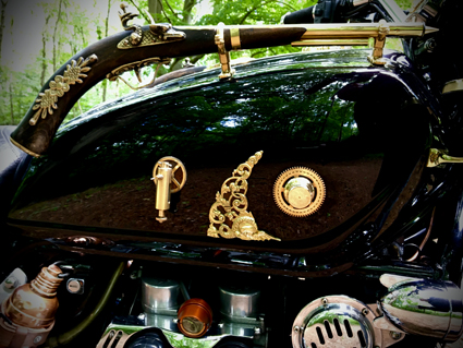 I think my experience of a kinda Steampunk style was first embedded in me as a kid, I remember my parents taking me to see Chitty Chitty Bang Bang & Mary Poppins around 1967-ish, I was 7 years old. I loved all the gadgets, clothing, copper & brass specially on old Chitty. I think that's what first made me a bit of a nutty inventor, coming up with little inventions on my toys, go-kart's & push bikes. My Granddad was a great encouragement to me, he always said, "If you can see it in your head, you can make it!" I've always had stuff going on in there lol... So, after getting the bike on the go, I knew I wanted to Steampunk it. I then had the thought, "What if it I had a theme?