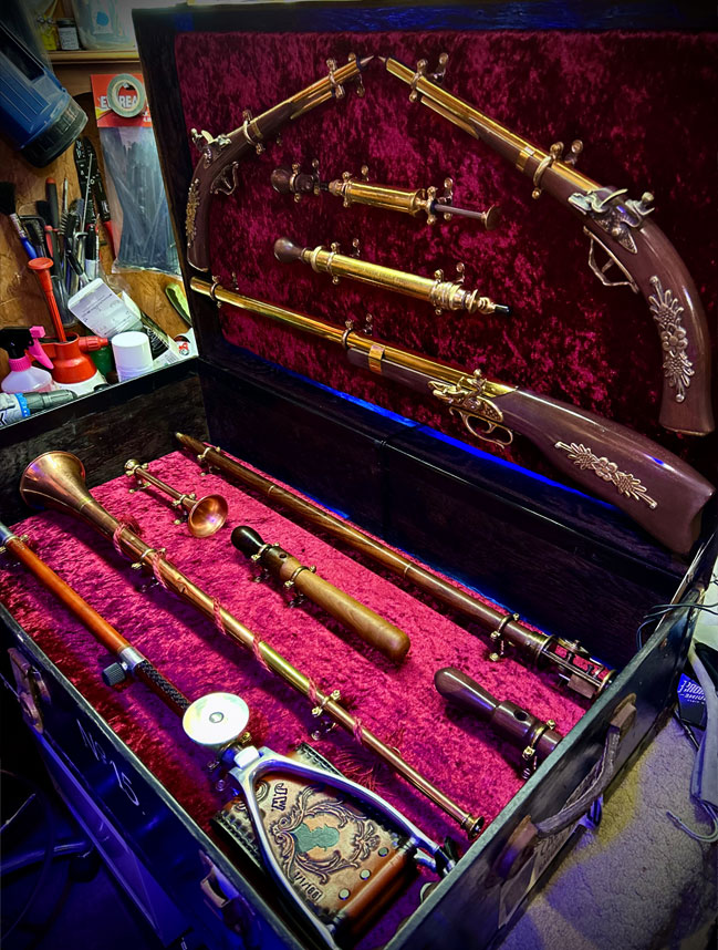 TRAVEL CASE FLINTLOCK PISTOLS, SHOT GUN & TRUNCHEON